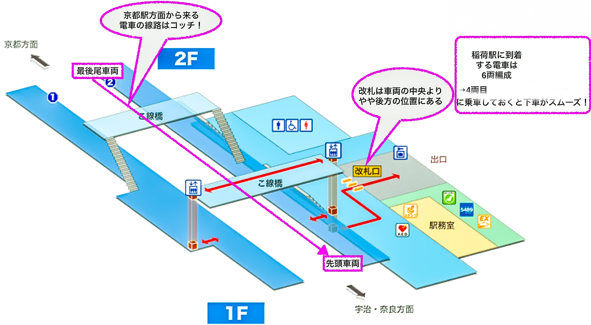 【豆知識】京都・大阪方面から伏見稲荷駅で下車するときは先頭車両に乗車しておくと下車が便利!