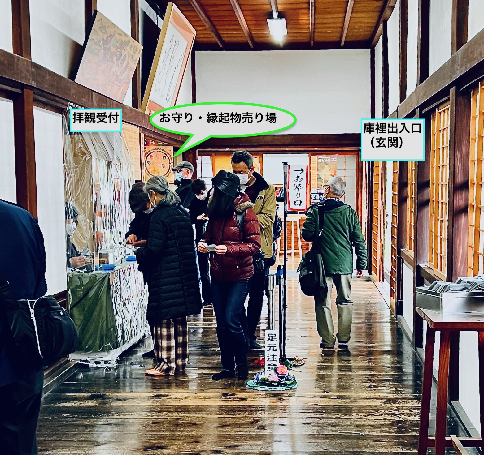 これは基本、紙袋に入れて手渡しするお守りも同様、それほど授与までに時間がかからないことから、拝観自体に混雑していても、お守りを買うために30分も並ぶようなことは無いと思われる。