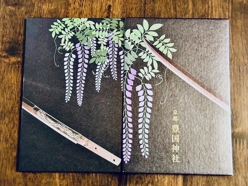京都 豊国神社に伝存される古今東西、天下無双の名刀「骨喰藤四郎(ほねばみ とうしろう)」と藤の花を表表紙と裏表紙に描いた、なんとも雅なデザインの朱印帳。