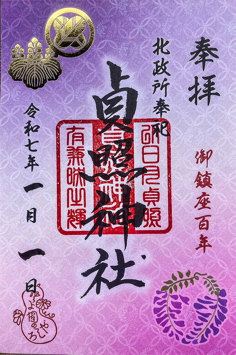 北政所おね を御祭神として、きわめて素敵に奉祀する上記、貞照神社は、御鎮座100年を迎え、この御朱印はその奉祝して令和七年度(2025年)の元旦より特別頒布されたもの♡